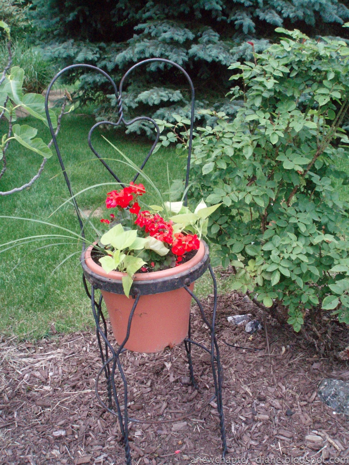 Since the seat was falling out of this old chair that Mike picked up on trash day, I used it for a pot of geraniums.